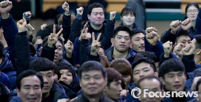 (서울=포커스뉴스) 14일 오후 서울 노원구 태릉선수촌 오륜관에서 열린 2016년 국가대표 훈련개시식 및 체육인 신년인사회에서 내빈들과 국가대표 선수들이 파이팅을 외치고 있다.
