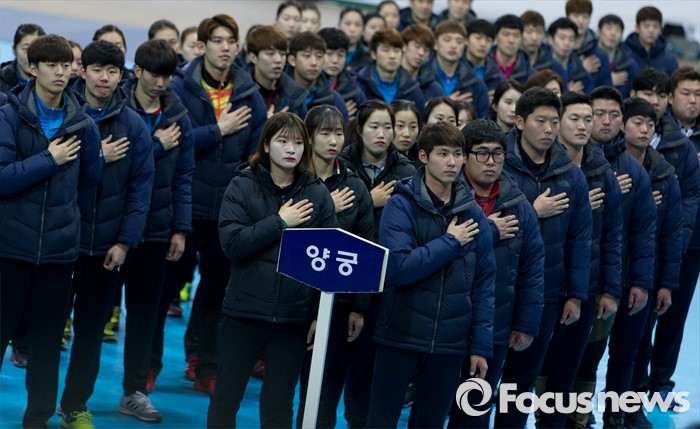 (서울=포커스뉴스) 14일 오후 서울 노원구 태릉선수촌 오륜관에서 열린 2016년 국가대표 훈련개시식 및 체육인 신년인사회에서