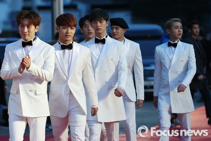 (서울=포커스뉴스) 14일 오후 서울 송파구 올림픽 체조경기장에서 열린 '25회 하이원 서울가요대상' 시상식에 참석한 아이돌그룹 비투비의 멤버들이 레드카펫위를 걷고 있다.