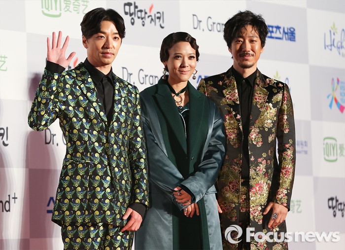 (서울=포커스뉴스) 14일 오후 서울 송파구 올림픽 체조경기장에서 열린 '25회 하이원 서울가요대상' 시상식에 참석한 래퍼 비지(왼쪽부터), 윤미래, JK타이거가 포토타임을 갖고 있다.