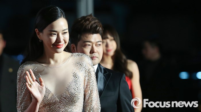 (서울=포커스뉴스) 14일 오후 서울 송파구 올림픽 체조경기장에서 열린 '25회 하이원 서울가요대상' 시상식에 참석한 배우 이하늬(왼쪽)이 손인사를 하고 있다.