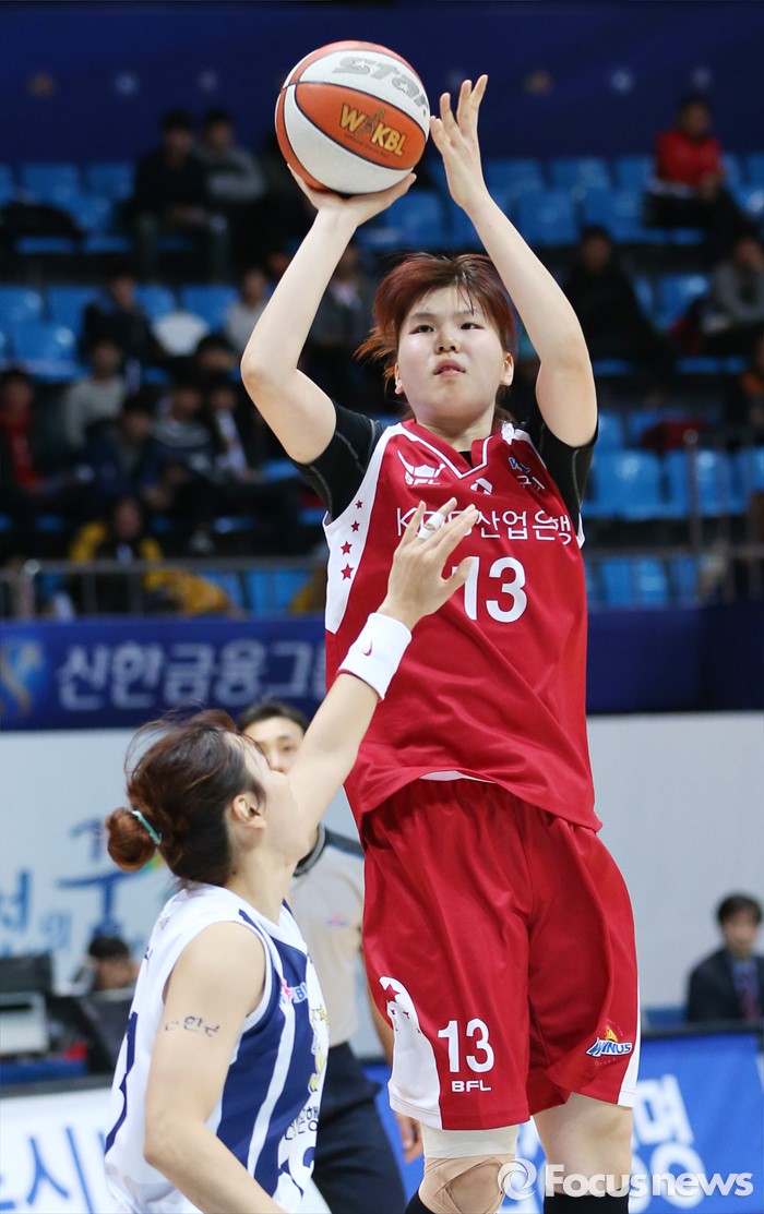 (인천=포커스뉴스) 14일 인천도원체육관에서 열린 2015~2016 여자프로농구 신한은행-KDB생명 경기에서 KDB생명 김소담이 신한은행 김단비의 수비에 앞서 점프슛을 쏘고 있다.