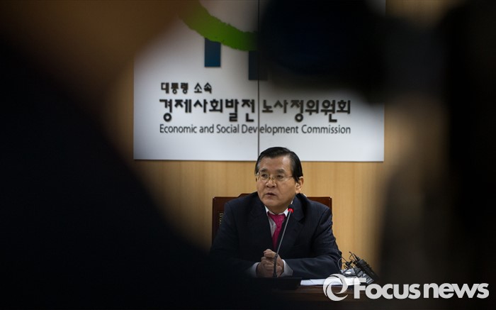 (서울=포커스뉴스) 15일 오전 서울 종로구 정부서울청사에서 노사정위원회 주최로 열린 '노동시장 구조개선 특별위원회 조찬간담회'에 참석한 김대환 경제사회발전노사정위원장이 모두발언을 하고 있다.