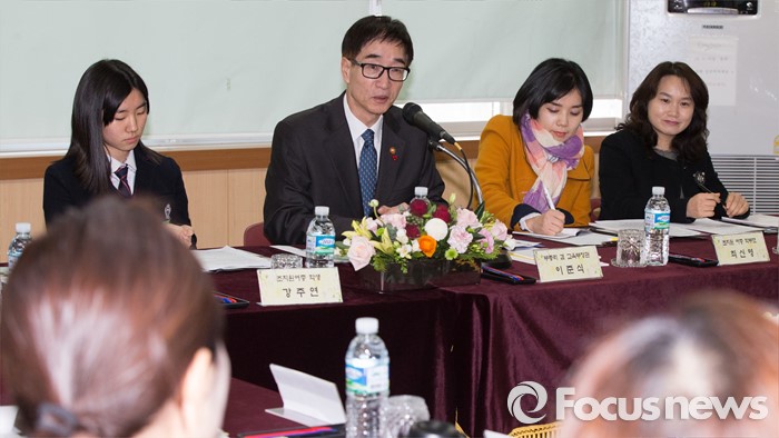 (세종=포커스뉴스) 이준식 사회부총리 겸 교육부장관이 15일 오전 세종시 조치원여자중학교에서 열린 자유학기제 현장간담회에 참석해 인사말을 하고 있다.