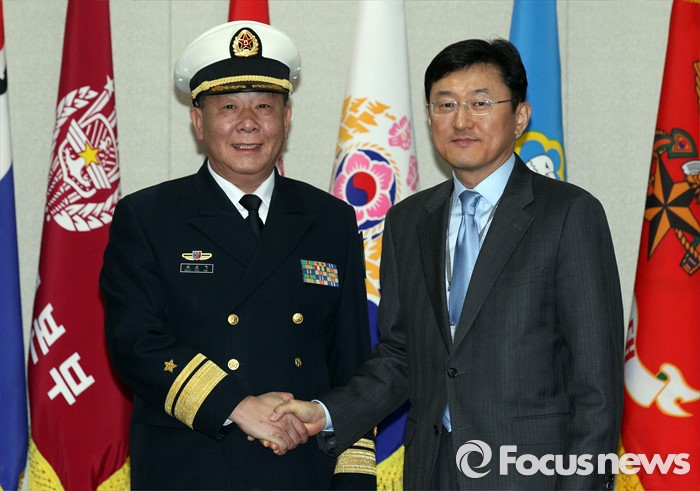 (서울=포커스뉴스) 한국군과 중국군 당국이 북한의 4차 핵실험 도발에 대한 대응 방안을 논의하기 위해 15일 오전 서울 국방부에서 '제15차 한·중 국방정책실무회의'를 개최, 윤순구 국방부 국제정책관과 관요페이 중국 국방부 외사판공실 주임이 악수를 하고 있다.
