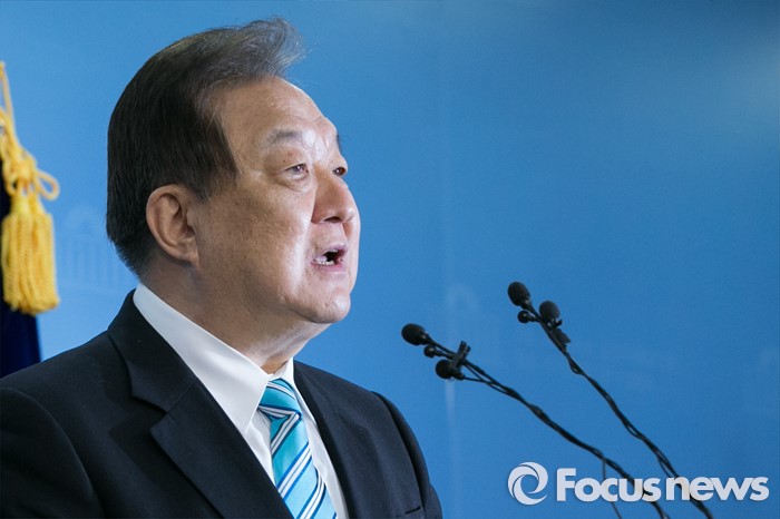 (서울=포커스뉴스) 정대철 더불어민주당 상임고문이 15일 오전 서울 여의도 국회 정론관에서 탈당 표명 기자회견을 하고 있다.