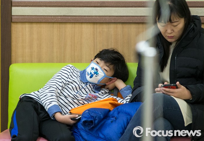 (서울=포커스뉴스) 인플루엔자 유행주의보가 발령된 15일 오전 서울 용산구 소화아동병원에서 한 어린이가 진료 차례를 기다리고 있다.