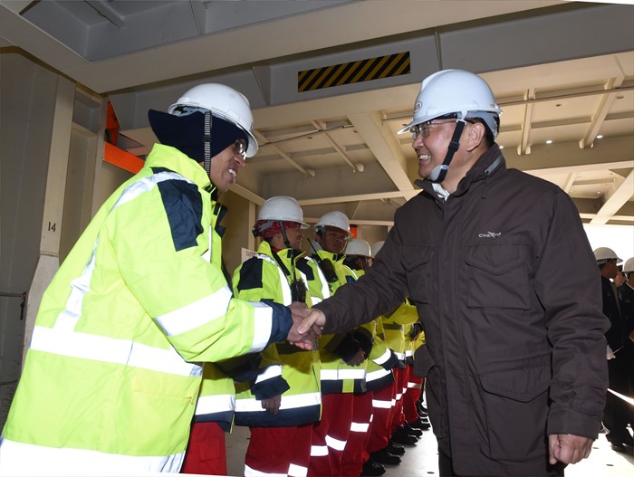 (평택=포커스뉴스) 유일호 부총리 겸 기획재정부장관이 15일 경기도 평택항을 방문, 기아자동차 수출 부두 현장을 시찰하며 직원과 악수를 하고 있다. <사진제공=기획재정부>
