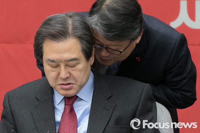 | △ 귀엣말하는 김무성·조원진 |