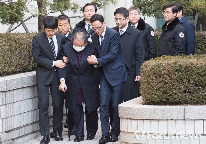 (서울=포커스뉴스) 조세포탈과 횡령·배임 등의 혐의로 기소된 조석래 효성그룹 회장이 15일 오후 서울 서초구 서울중앙지법에서 열린 1심 선고 공판을 끝내고 법정을 나서고 있다.