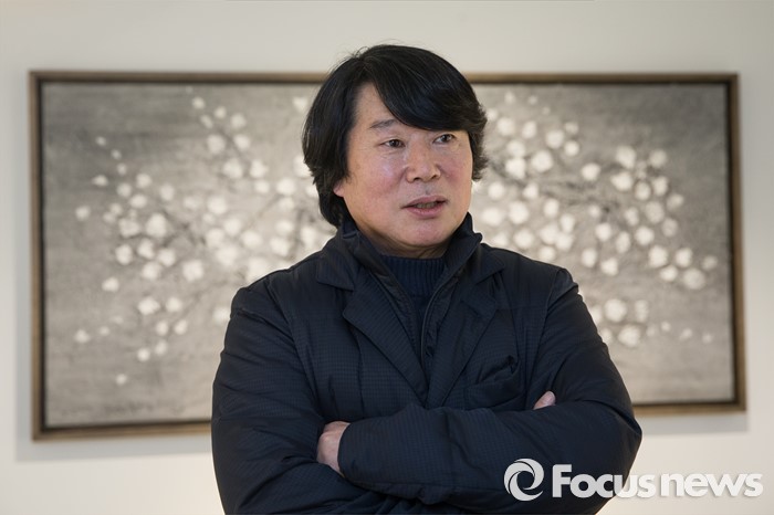 (서울=포커스뉴스) 15일 오후 서울 용산구 갤러리 조은에서 김덕용, 전병현 작가의 '갤러리 조은 개관전'이 열리고 있는 가운데 전병현 작가가 인터뷰를 하고 있다.