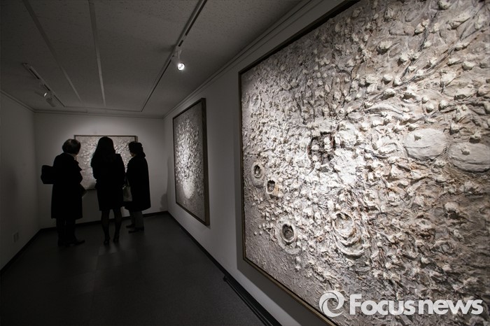 (서울=포커스뉴스) 15일 오후 서울 용산구 갤러리 조은에서 김덕용, 전병현 작가의 '갤러리 조은 개관전'이 열리고 있는 가운데 관람객이 전병현 작가의 작품을 감상하고 있다.