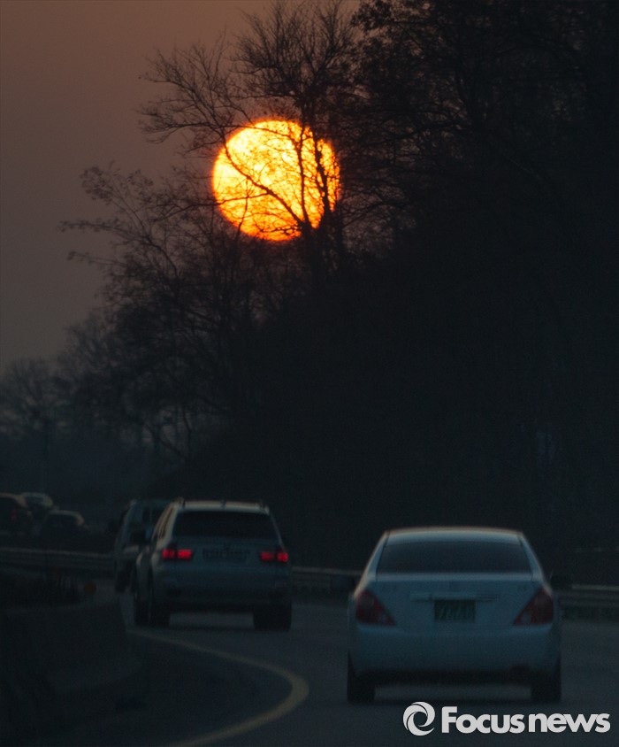 (용인=포커스뉴스) 매섭던 추위가 한풀 꺾이며 포근한 주말이 예상되는 15일 오후 경기 용인시 처인구 양지터널 인근에서 일몰이 관측되고 있다.