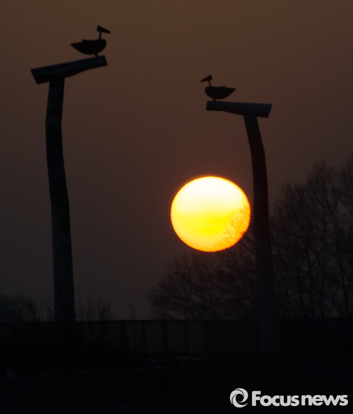 (용인=포커스뉴스) 매섭던 추위가 한풀 꺾이며 포근한 주말이 예상되는 15일 오후 경기 용인시 처인구 양지터널 인근에서 일몰이 관측되고 있다.