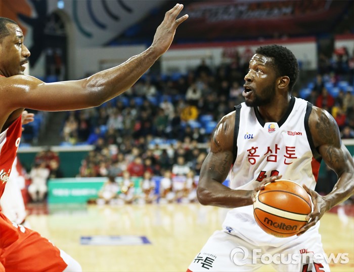 (서울=포커스뉴스) 15일 서울 잠실학생체육관에서 열린 2015-2016 프로농구 SK-KGC 경기에서 KGC 마리오 리틀이 SK 사이먼의 마크를 받으며 슈팅을 노리고 있다.