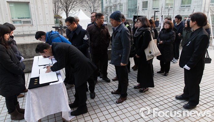 (서울=포커스뉴스) 16일 오후 故 신영복 성공회대 석좌교수의 빈소가 마련된 서울 구로구 성공회대학교 성미가엘성당에 조문객들의 발걸음이 이어지고 있다.