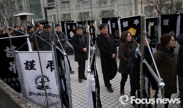 (서울=포커스뉴스) 17일 오후 서울 구로구 성공회대학교 대학성당에 차려진 故 신영복 성공회대 석좌교수의 빈소에 조문객들의 발길이 이어지고 있다.