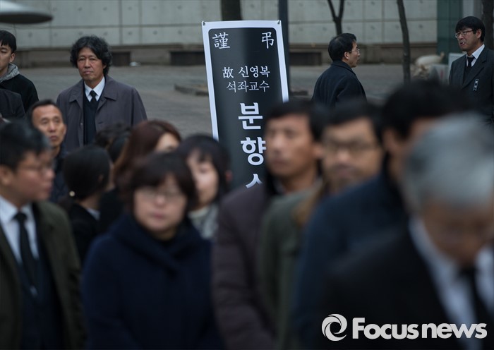(서울=포커스뉴스) 17일 오후 서울 구로구 성공회대학교 대학성당에 차려진 故 신영복 성공회대 석좌교수의 빈소에 조문객들의 발길이 이어지고 있다.