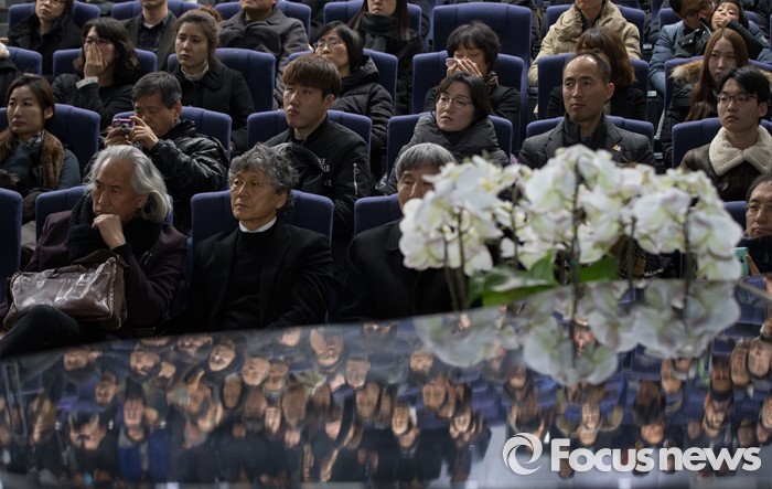 (서울=포커스뉴스) 17일 밤 서울 구로구 성공회대학교에서 열린 '신영복 교수 추모의 밤' 행사에 시민들이 모여 신영복 교수를 기리고 있다.
