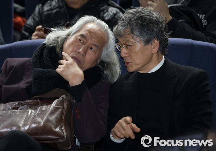 (서울=포커스뉴스) 17일 밤 서울 구로구 성공회대학교에서 열린 '신영복 교수 추모의 밤' 행사에 박재동(왼쪽) 화백이 참석하고 있다.