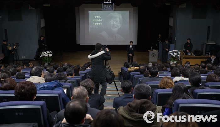 (서울=포커스뉴스) 17일 밤 서울 구로구 성공회대학교에서 열린 '신영복 교수 추모의 밤' 행사에 시민들이 모여 신영복 교수를 기리고 있다.