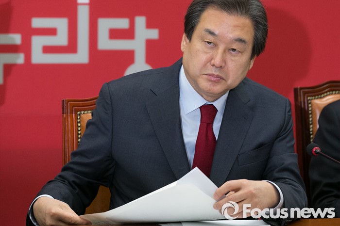 (서울=포커스뉴스) 김무성 새누리당 대표가 18일 오전 서울 여의도 국회에서 열린 최고위원회의에 참석해 서류 봉투를 열고 있다.