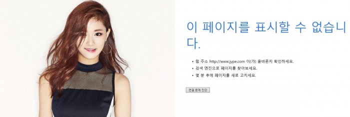 (서울=포커스뉴스) 그룹 트와이스 멤버 쯔위의 ‘국기 논란’ 사태가 거세지고 있는 가운데 소속사 JYP엔터테인먼트의 홈페이지가 다운돼 눈길을 끌고 있다.