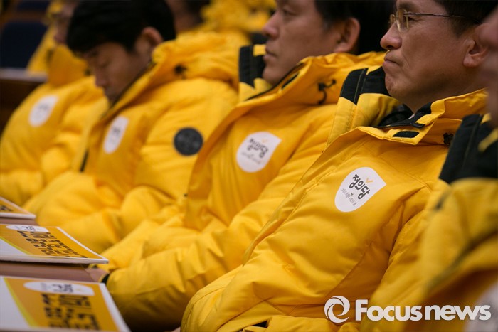(서울=포커스뉴스) 18일 오전 서울 여의도 국회 헌정기념관에서 열린 정의당 2016 총선 수도권 후보 발대식에 참석한 후보들이 심상정 상임대표의 인사말을 듣고 있다.