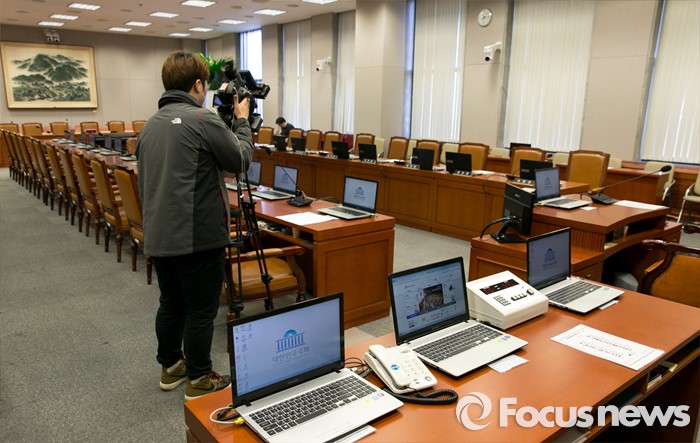 (서울=포커스뉴스) 18일 오전 서울 여의도 국회에서 여당 단독으로 열린 운영위원회 전체회의가 야당 불참으로 산회되어 의원들이 퇴장한 빈자리만 보이고 있다.