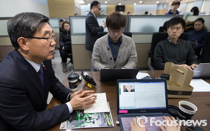 (세종=포커스뉴스) 이기권 고용노동부장관이 18일 오전 세종시 정부세종청사 고용부 기자실을 방문, 출입기자들과 간담회를 갖고 노동현안에 대해 질문에 답변하고 있다.