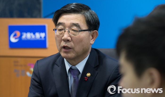 (세종=포커스뉴스) 이기권 고용노동부장관이 18일 오전 세종시 정부세종청사 고용부 기자실을 방문, 출입기자들과 간담회를 갖고 노동현안에 대해 질문에 답변하고 있다.