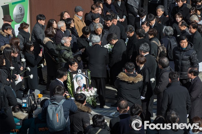 (서울=포커스뉴스) 18일 오후 서울 구로구 성공회대학교 대학성당에서 故 신영복 석좌교수 영결식이 끝나고 고인의 영정과 유해가 운구되고 있다.