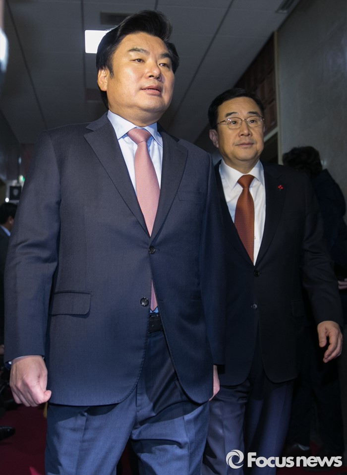 (서울=포커스뉴스) 18일 오후 서울 여의도 국회에서 국회의장 주재로 선거구 획정 및 쟁점 법안 논의를 위해 진행된 여야 원내지도부 회동에 원유철 새누리당 원내대표와 김정훈 정책위의장이 의장 집무실로 향하고 있다. 이날 회동은 여당이 운영위원회 전체회의를 오전에 단독 소집해 '심사기일 지정' 요건(직권상정요건)을 완화하는 내용의 국회법 개정안을 처리한 것에 대해 야당이 반발해 불참했다.