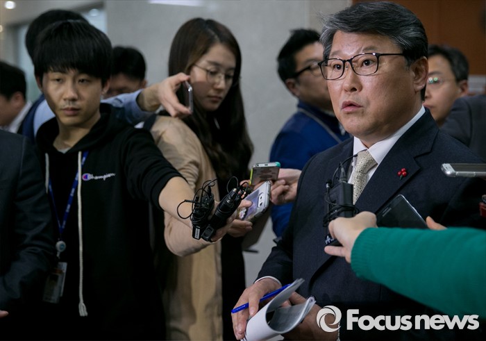 | △ 취재진 질문 답하는 새누리당 조원진 |