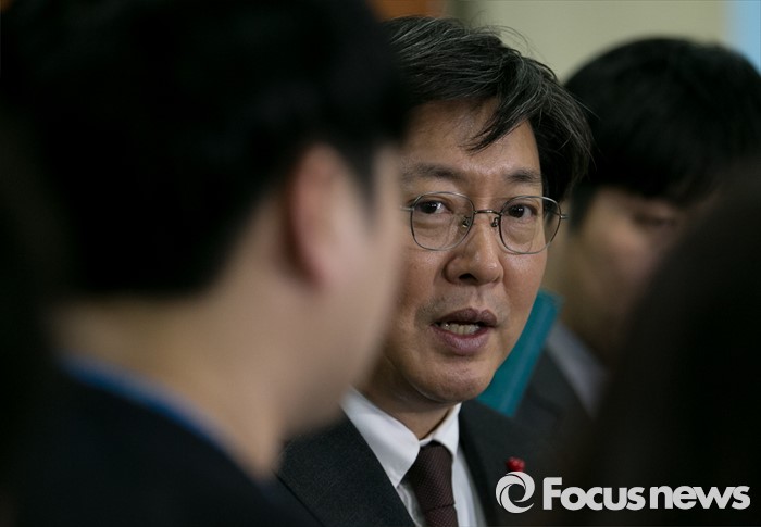 | △ 운영위 관련 취재진 질문 답하는 이춘석 |