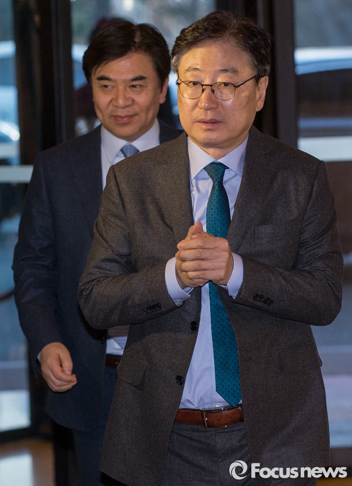 (서울=포커스뉴스) 18일 오후 서울 중구 신라호텔에서 열린 삼성 신임임원 부부동반 만찬회에 윤부근 삼성전자 CE부문 사장, 김현석 삼성전자 VD사업부장이 참석하고 있다.