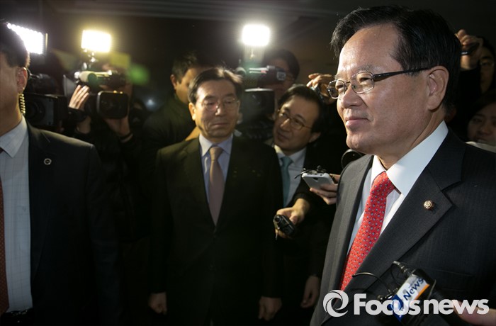 (서울=포커스뉴스) 새누리당이 단독으로 직권상정 완화 국회법 개정 시도에 착수한 19일 오전 정의화 국회의장이 서울 여의도 국회로 출근하며 취재진 질문을 받고 있다.