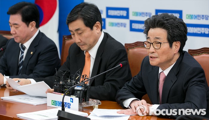 (서울=포커스뉴스) 이목희 더불어민주당 정책위의장이 19일 오전 서울 여의도 국회에서 열린 원내대책회의에 참석해 모두발언을 하고 있다.