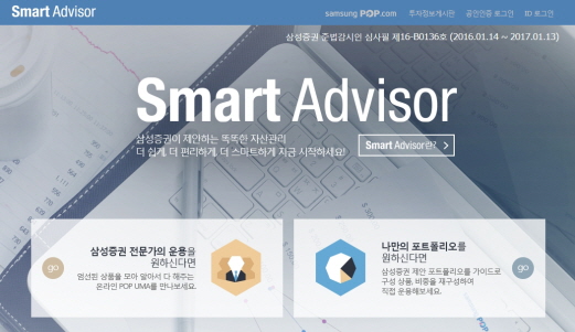 온라인 POP UMA의 최소가입금액은 2000만원이며, 수수료는 연 0.6 ~ 1%를 분기단위로 후취한다. 가입은 삼성증권 홈페이지에서 온라인 자산관리 플랫폼인 ‘스마트 어드바이저(Smart Advisor)’를 통해 할 수 있다.<사진제공=삼성증권>