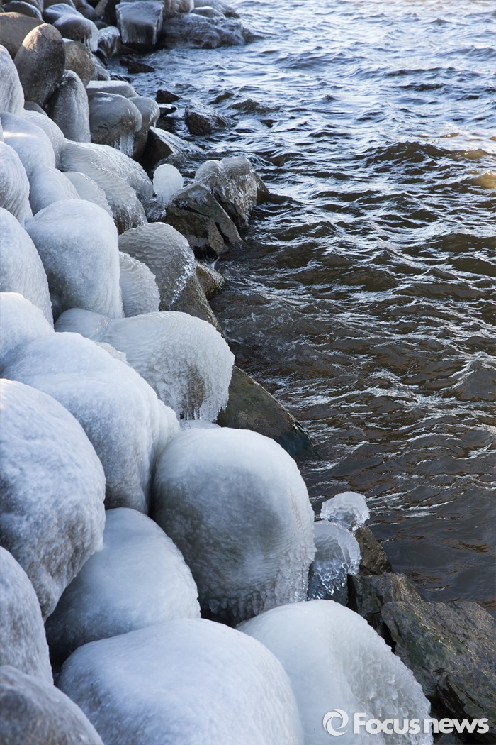 (서울=포커스뉴스) 서울 아침기온이 영하 15도까지 내려간 19일 오전 서울 서초구 반포한강공원 바위에 얼음이 얼어 있다.