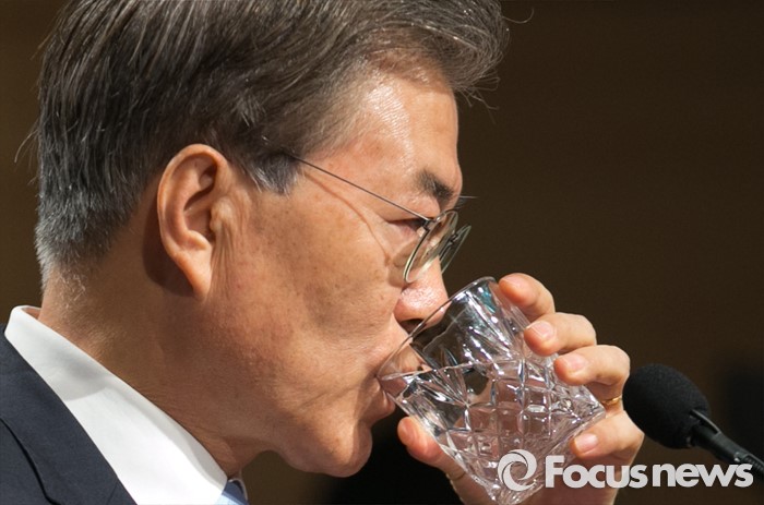 △ 목 축이는 문재인 대표