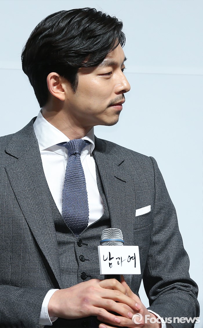 (서울=포커스뉴스) 19일 오전 서울 강남구 압구정 CGV에서 열린 영화 '남과 여' 제작보고회에 참석한 배우 공유가 취재진에게 질문을 받고 있다.