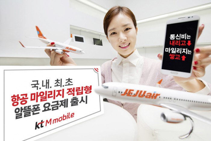 전용태 kt M모바일 사업운영본부장은 "알뜰폰을 통해 고객들이 통신비 절약뿐만 아니라 부가적인 혜택까지 누릴 수 있도록 이번 요금제를 출시했다"며, "2016년에도 고객이 진짜 필요한 것들을 충족시켜주는 실용적인 요금제와 서비스로, 알뜰폰 시장 발전에 앞장설 것"이라고 말했다.kt M모바일은 제주항공과의 제휴를 통해 국내 알뜰폰 중 최초로 항공 마일리지를 적립해주는 요금제를 출시했다. <사진제공=KT>