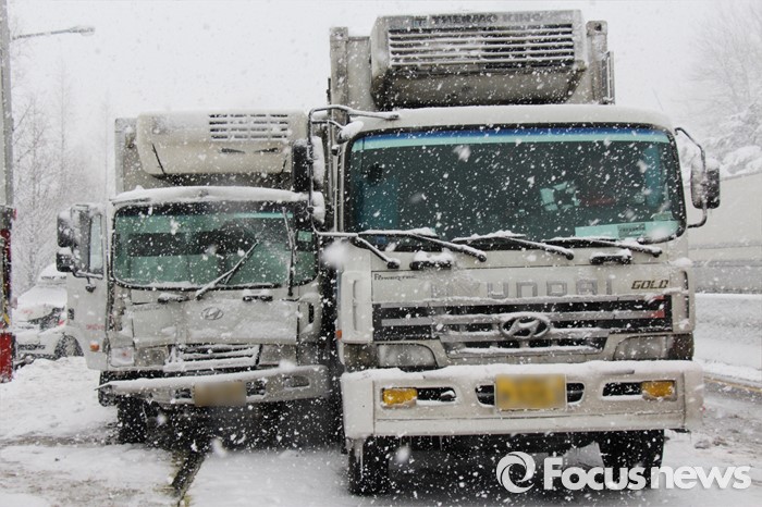 | △ 호남고속도로 연쇄추돌, 눈길에 미끄러진 차량들 |
