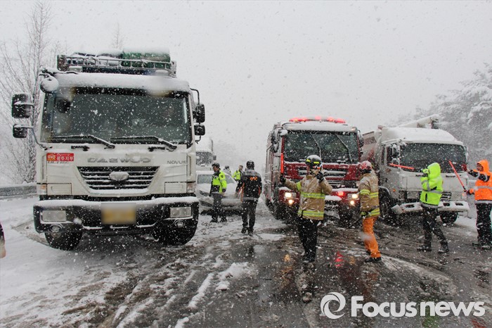 정읍소방서는 이날 사고로 차량 33대 추돌, 중상자 2명, 경상자 7명이 발생해 인근 병원에 이송했다고 밝혔다. <사진제공=정읍소방서>