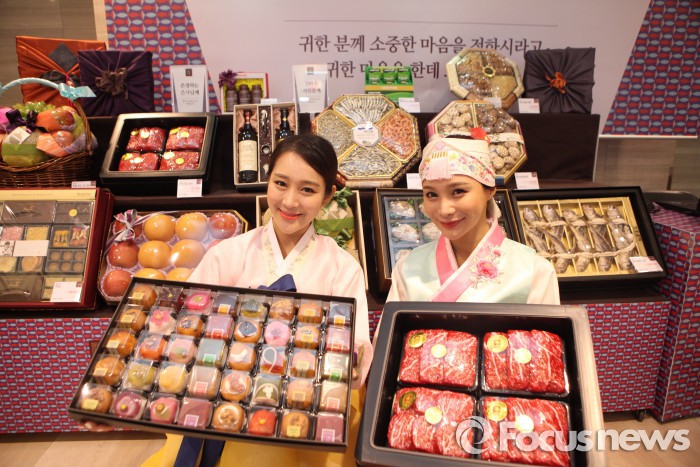 (서울=포커스뉴스)백화점과 대형마트, 편의점 등 유통업계가 본격적으로 설 선물세트 판매를 시작했다. 업체별로 수십만 원대를 호가하는 프리미엄 제품부터 생필품 위주의 중저가형까지 다양한 선물세트를 선보인다.