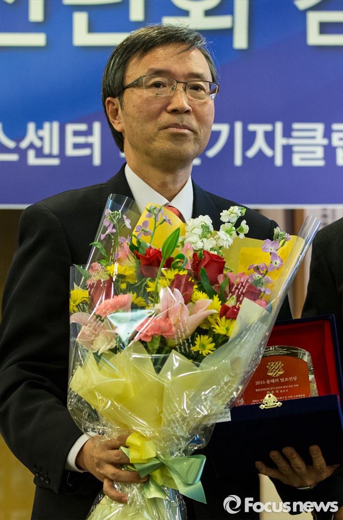 (서울=포커스뉴스) 19일 오후 서울 중구 프레스센터에서 열린 법조언론인클럽 신년회 겸 시상식에서 올해의 법조인상을 받은 김용직 변호사가 기념촬영을 갖고 있다.