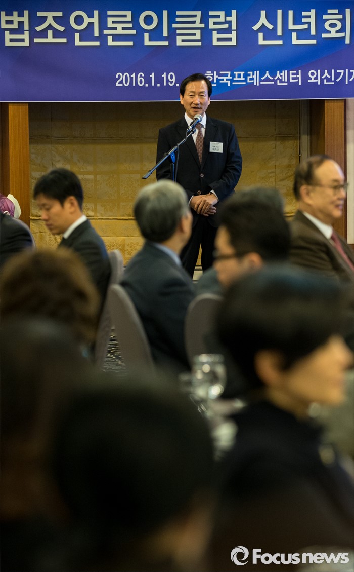 (서울=포커스뉴스) 19일 오후 서울 중구 프레스센터에서 열린 2016년 법조언론인클럽 신년회 겸 시상식에서 류희림 법조언론인클럽 회장이 인사하고 있다.