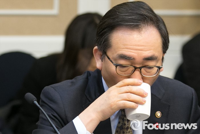 (서울=포커스뉴스) 20일 오전 서울 여의도 국회 귀빈식당에서 열린 테러 위기상황 대처를 위한 합동 당정협의에 참석한 조태열 외교부 2차관이 물을 마시고 있다.