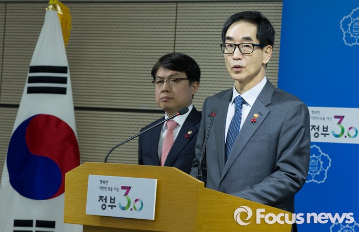 (세종=포커스뉴스) 이준식 사회부총리 겸 교육부장관이 19일 오전 세종시 정부세종청사 교육부 공용브리핑룸에서 국민행복분야 정부합동 업무보고 사전브리핑을 하고 있다. 왼쪽은 고영선 고용노동부 차관